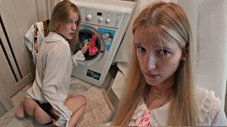 Сводная сестренка случайно постирала свой член в стиралке. Когда я зашел в ванну, то увидел, как она играется с ним.